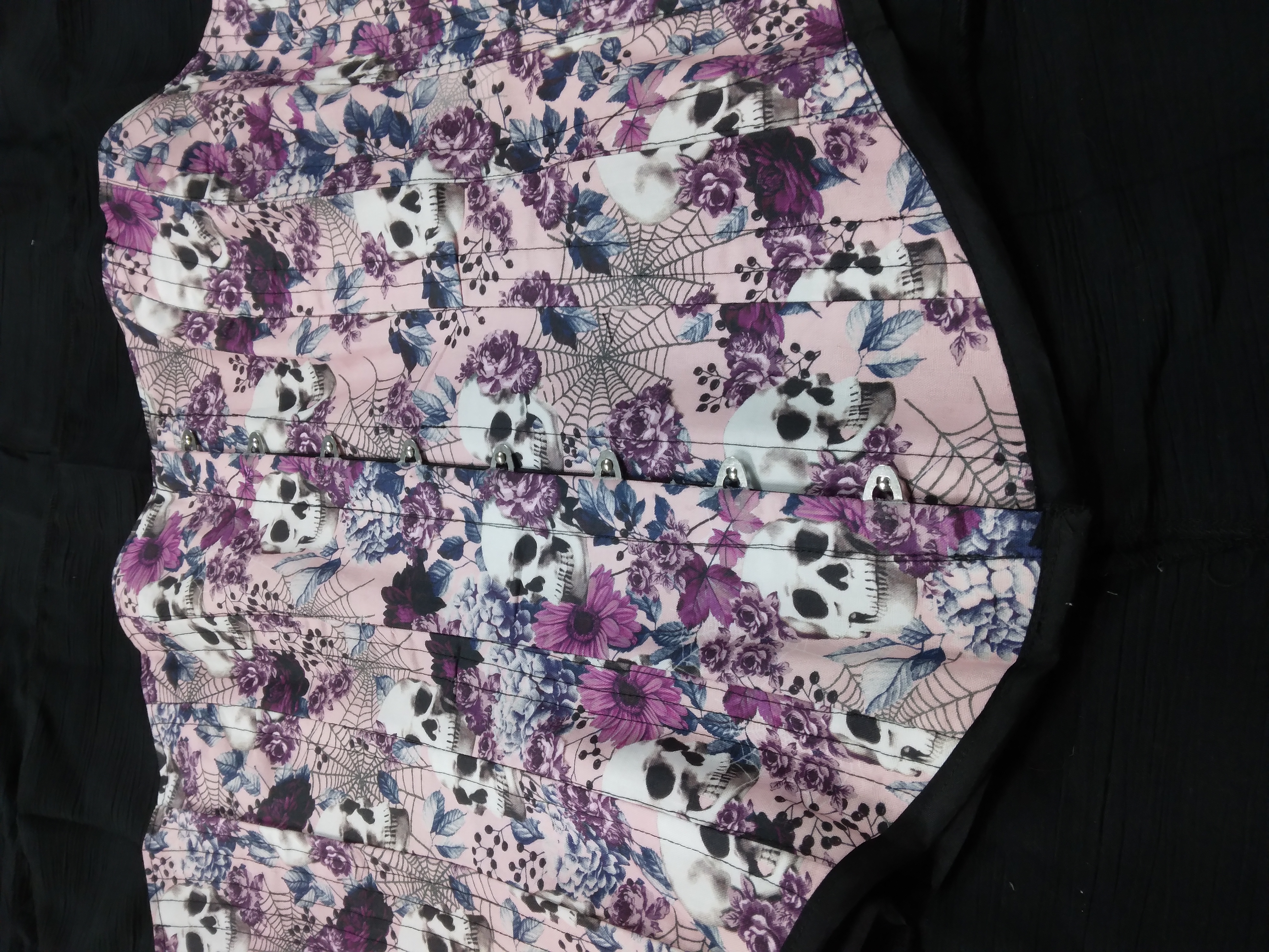 xxs-6xl other custom sizes available . These corsets are more Time period, than the Victorain corsets, made of 3 layers,1) Fabric, 2) Heavy wgt, Stabilizer, & 3) Cotton Twill Backing. These are 1/2" Steel Boned in the Font and both Sides. keeping the form of the body snug but not restricted. A firm but comfortable corset with ample space for Ample Bosoms. These corsets are machine washable, hang to dry