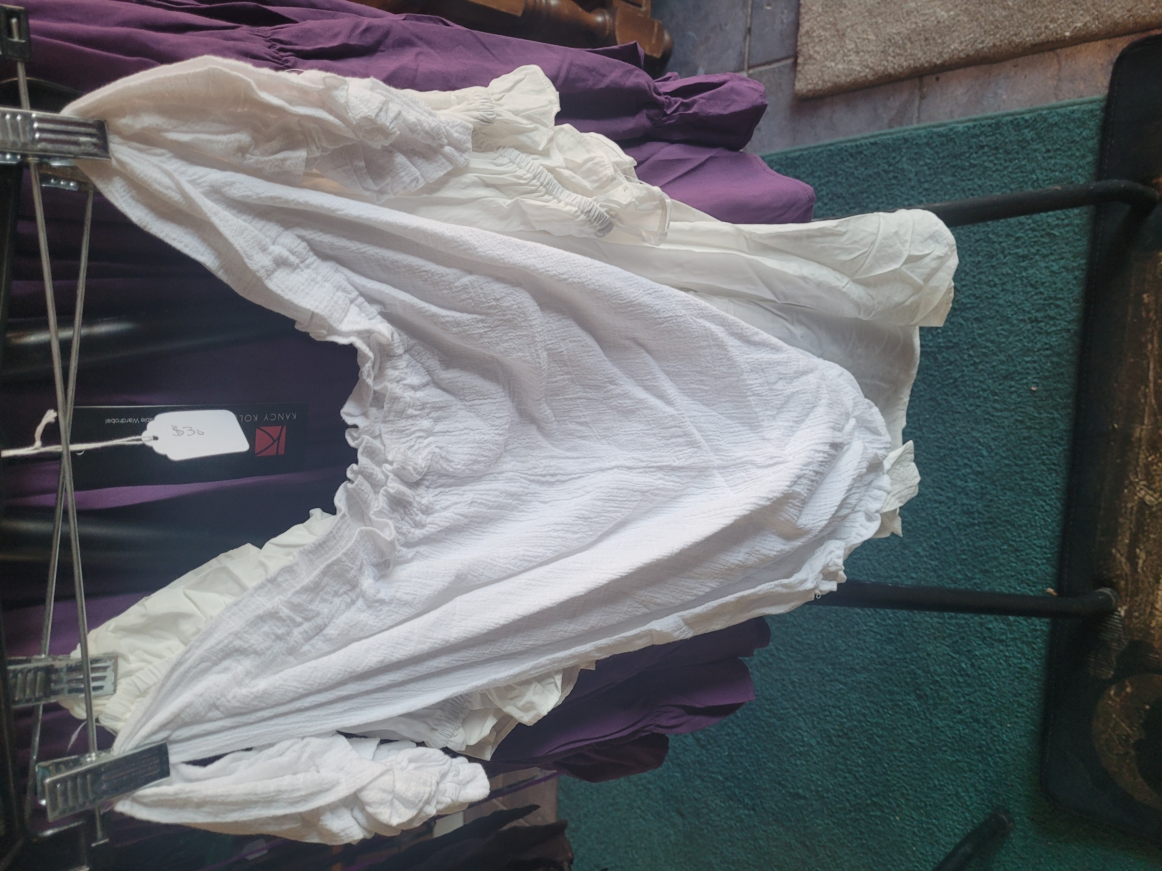 made in Cotton, Gauze, poly-silk- Elastic neck with a slight ruffle, elastic sleeve(optional) in a variety of colors, prints and solids.
