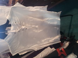 made in Cotton, Gauze, poly-silk- Elastic neck with a slight ruffle, elastic sleeve(optional) in a variety of colors, prints and solids.