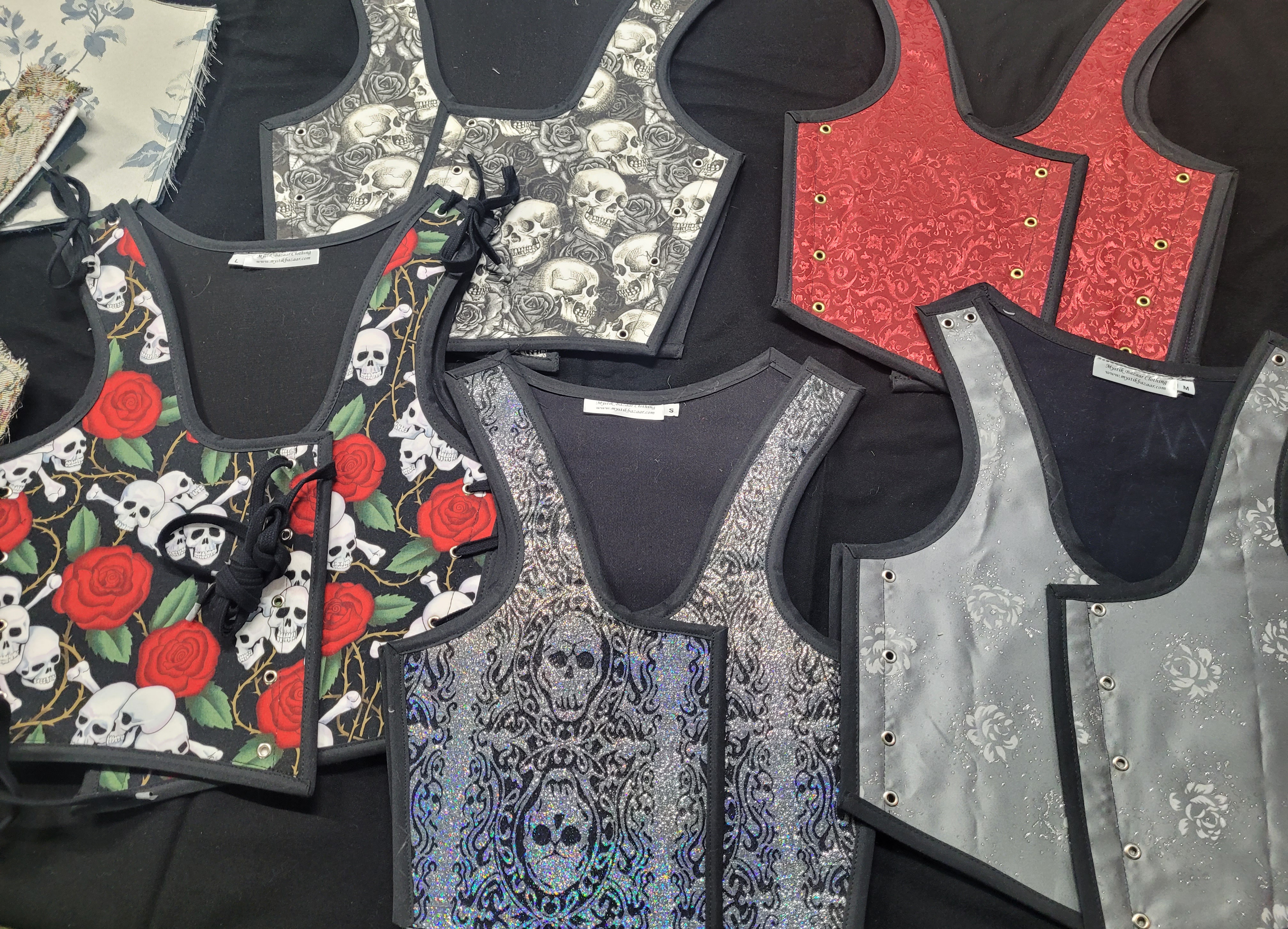 xxs-6xl other custom sizes available . These corsets are more Time period, than the Victorain corsets, made of 3 layers,1) Fabric, 2) Heavy wgt, Stabilizer, & 3) Cotton Twill Backing. These are 1/2" Steel Boned in the Font and both Sides. keeping the form of the body snug but not restricted. A firm but comfortable corset with ample space for Ample Bosoms. These corsets are machine washable, hang to dry